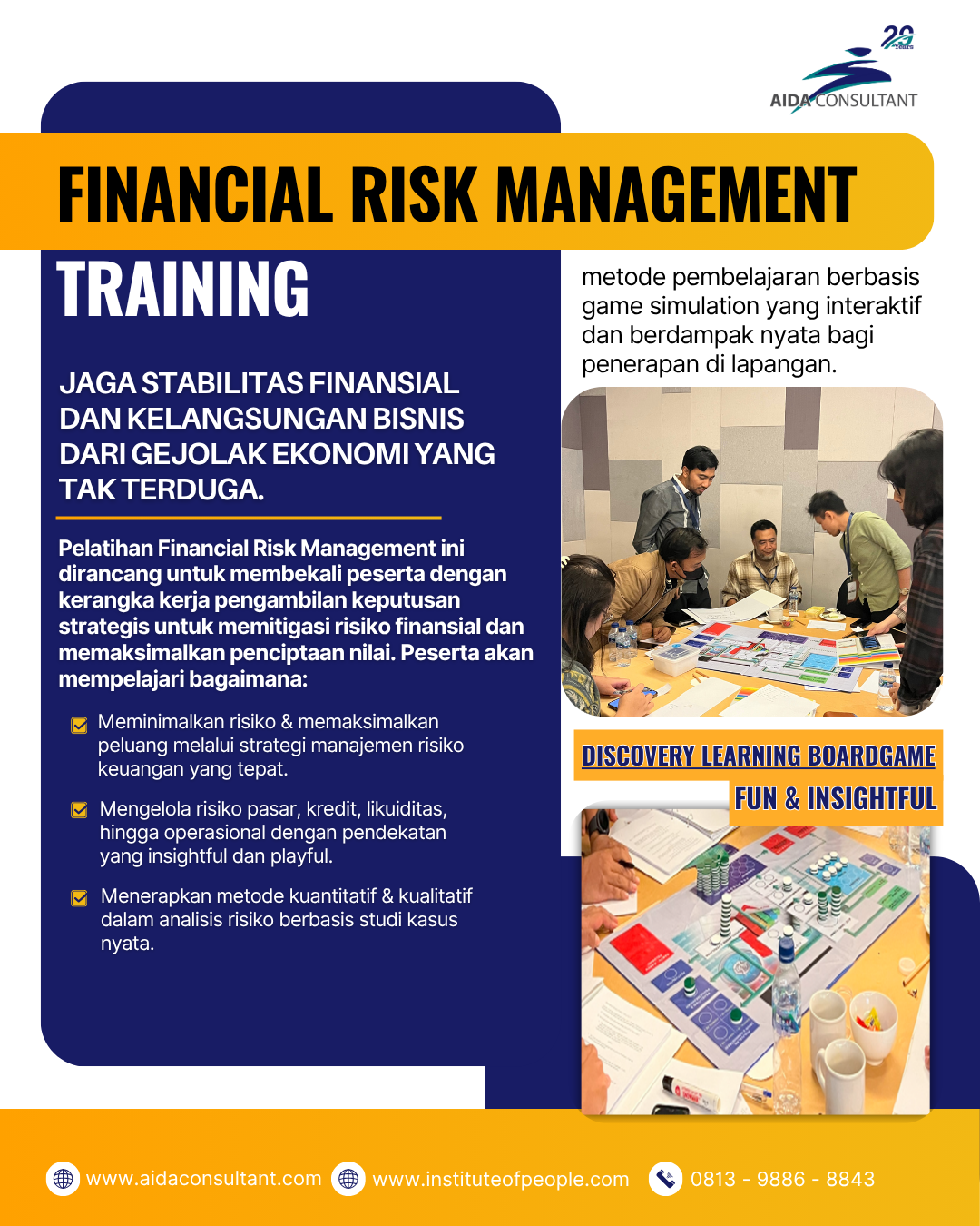 Program ini diselenggarakan oleh Institute of People by Aida Consultant, mitra resmi berlisensi dari American Academy yang terdiri dari American Academy of Project Management (AAPM®), Global Academy of Finance and Management (GAFM®), American Academy of Financial Management (AAFM®), dan International Board of Standards (IBS). Lembaga-lembaga ini merupakan otoritas sertifikasi internasional di bidang manajemen, keuangan, investasi, dan proyek. Dengan pengalaman dan reputasi tinggi, Aida Consultant siap membantu Anda meningkatkan kompetensi dan daya saing di tingkat global.